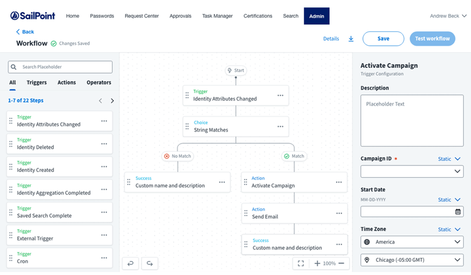 SailPoint’s Identity Security Platform features a built-in extensibility framework that provides event triggers, APIs, and a drag-and drop-workflow interface to quickly and seamlessly integrate identity security into your existing business processes and ecosystem of applications.