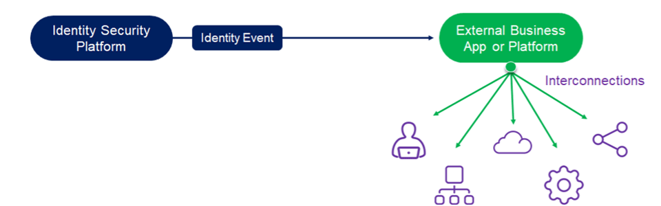For example, a core identity security platform broadcasts predefined events when something in the system changes; downstream applications listen to those events and update accordingly. This allows decoupled, highly reactive, independent subsystems to all work in concert.